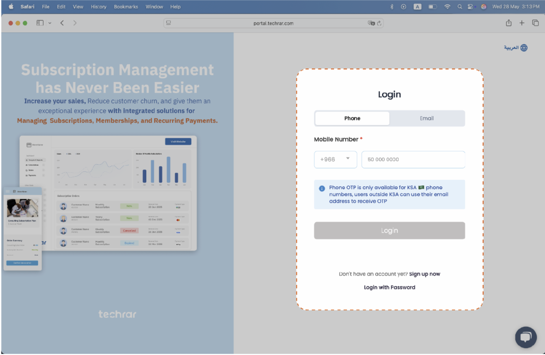 Login to your Techrar account at https://portal.techrar.com/login.